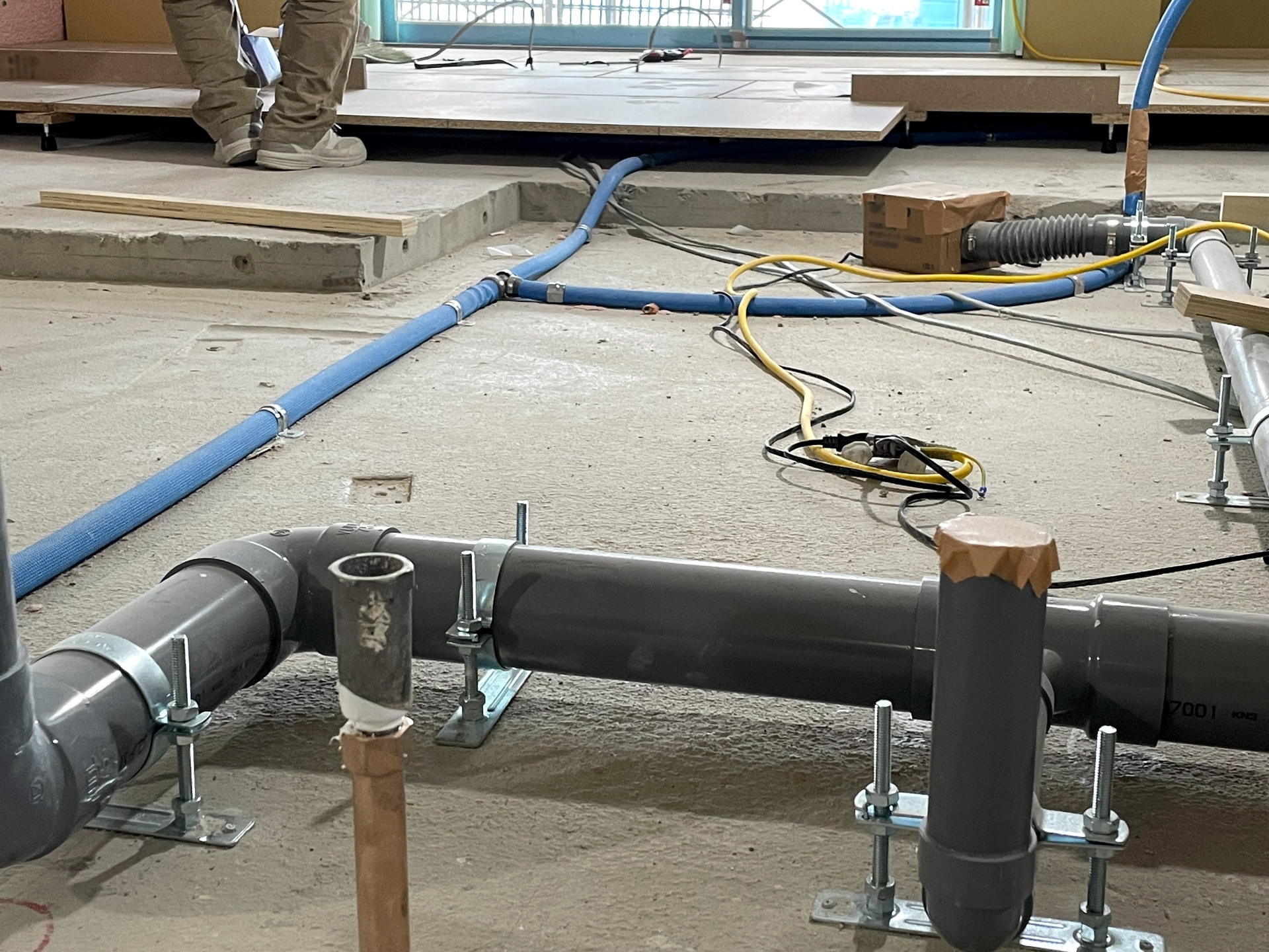 給水・給湯管は適切な経路を確保し、排水には十分な勾配を取ることが重要です。