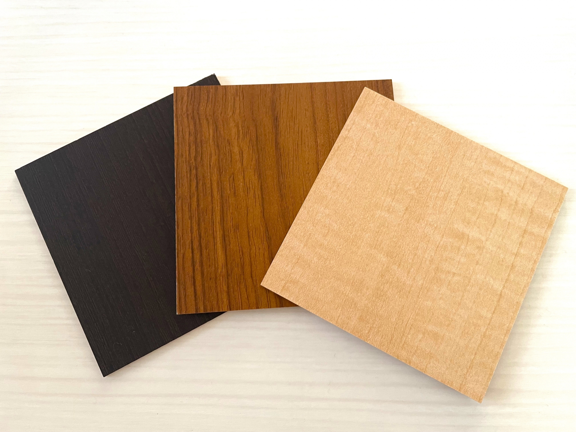 床材サンプルは寝かせて、壁材は立てて並べると、光の当たり方や陰影が施工時に近くなり、仕上がりが想像しやすくなります。