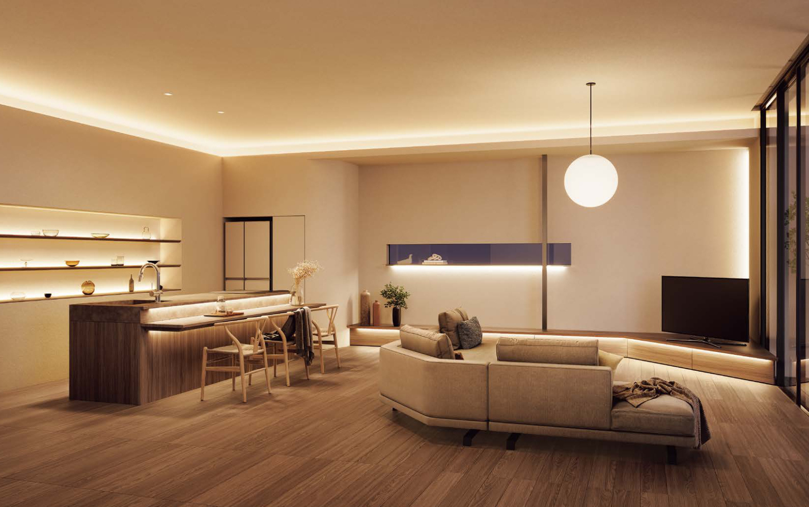 間接照明壁や天井を照らして高級感と奥行きを演出。